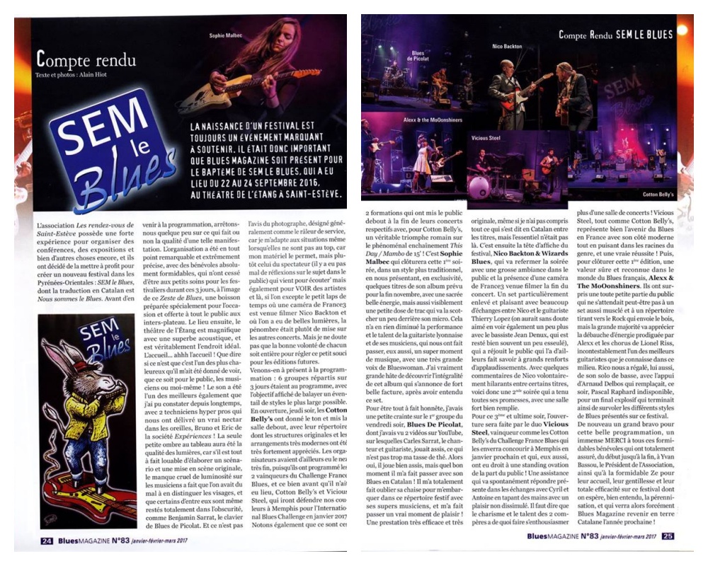 Alain Hiot, Blues Magazine (F), 2017 Lire la suite... * - Si certains pensent encore qu'on ne peut pas jouer le Blues sans être noir et descendant d'esclaves, c'est parce qu'ils n'ont jamais eu la chance de croiser Nico Backton... Il n'y a qu'un pas entre la légende et le réel et nous l'avons franchi ce soir ! Fred Delforges, Zicazic Chronique (F), 2016 Lire la suite... *